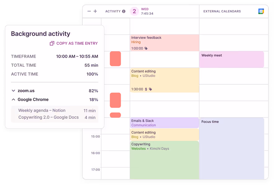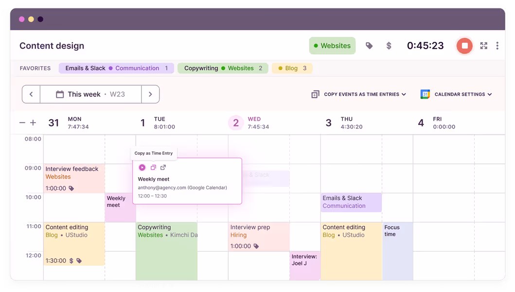 هذه هي ميزتنا الأكثر شعبية. ادمج التقاويم وانسخ إدخالات الوقت إلى مساحة عملك.