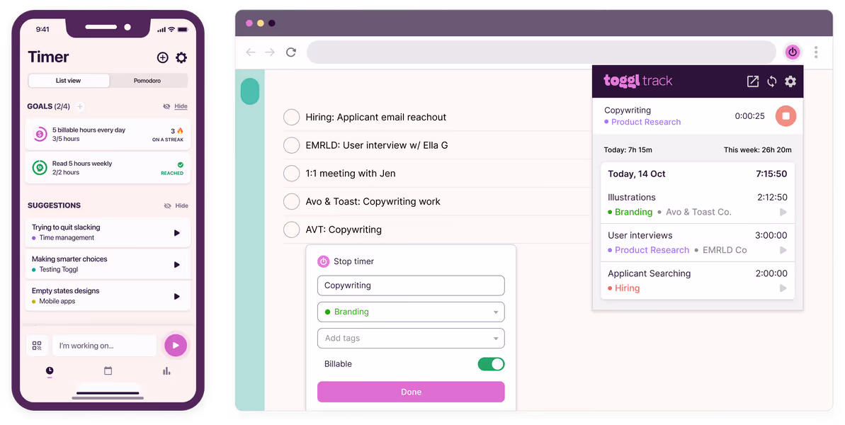 اشترك في خطة Toggl Track المجانية إلى الأبد. جرّب خطتنا المميزة مع فترة تجريبية مجانية لمدة 30 يومًا. لا يلزم وجود بطاقة ائتمان للبدء.