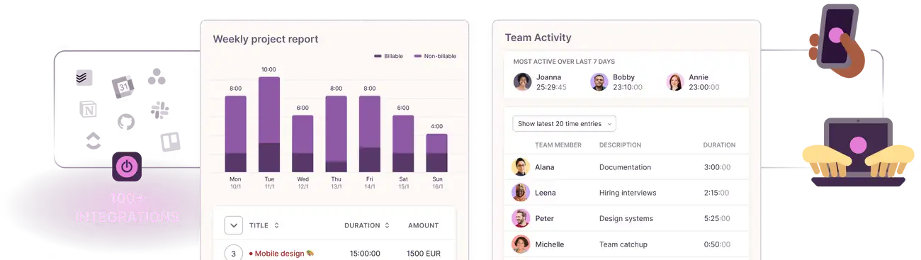 - احصل على المزيد من عقود العملاء من خلال عروض الأسعار الشفافة والتوقعات الدقيقة بفضل بيانات تتبع الوقت.